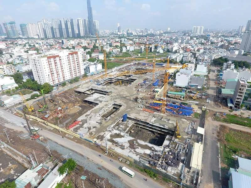 Hiện trạng công trình thi công của dự án Laimian City. Ảnh: HCT