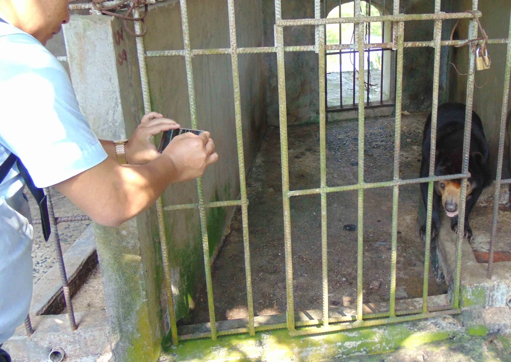 Khu vực nuôi gấu chật hẹp, cửa lại không khóa, rất nguy hiểm. Ảnh: TRẦN NGỌC
