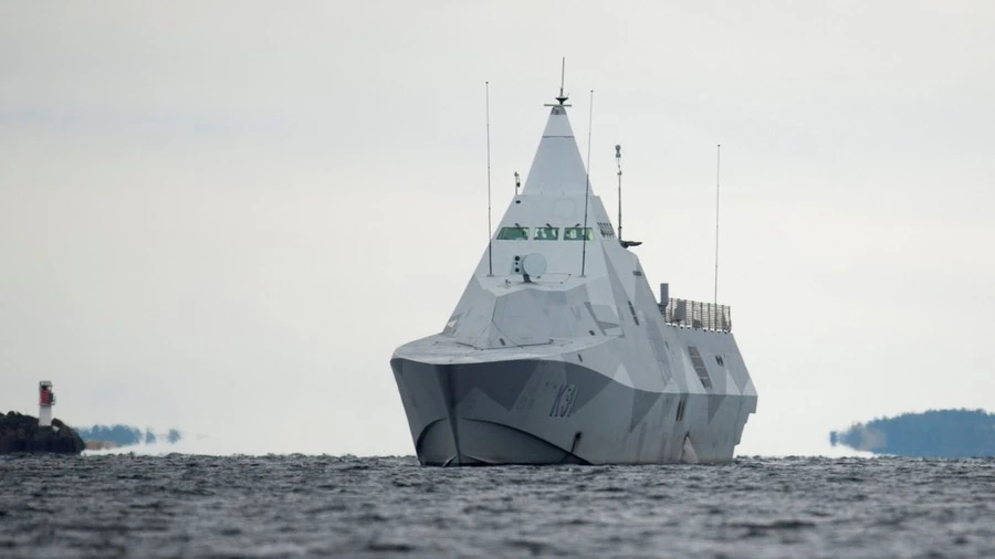 Tàu hộ vệ HMS Visby của Thụy Điển thạm gia chiến dịch tìm kiếm "tàu ngầm nước ngoài" bí ẩn. Ảnh: REUTERS