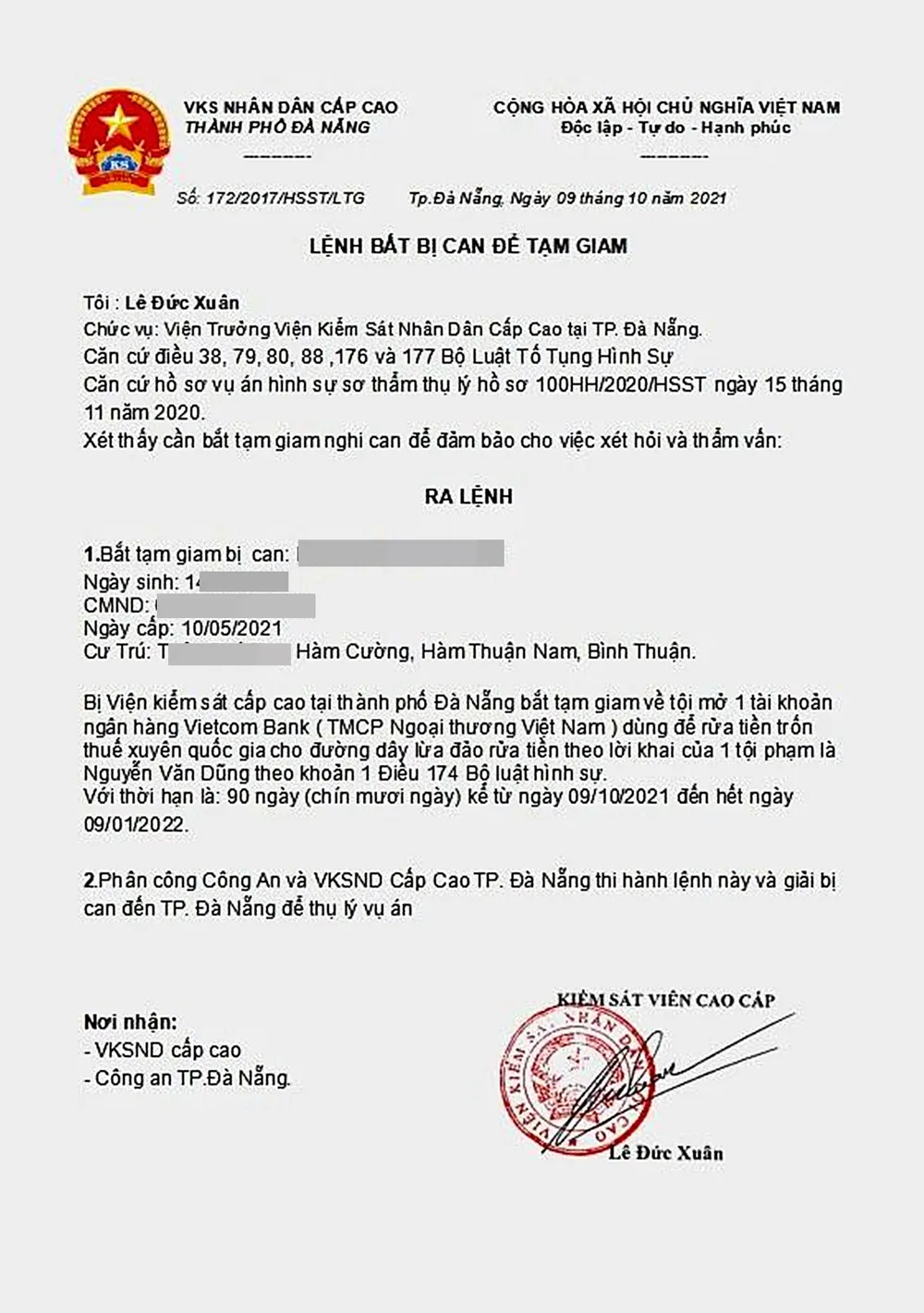 Sau đó yêu cầu ông L mở ứng dụng zalo để nhận một lệnh bắt bị can để tạm giam có đóng dấu đỏ. Người đàn ông xưng kiểm sát viên yêu cầu ông L không được cho bất cứ ai, kể cả người nhà biết có cuộc điện thoại trên và buộc ông L khai báo các thông tin thành viên trong gia đình.