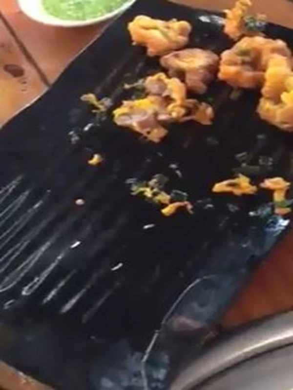 “Trưa ngày 7-8, chúng tôi có gọi món sụn gà chiên. Tuy nhiên, thấy món ăn đã nguội nên yêu cầu nhân viên mang vào hâm nóng. Nhưng khi nhân viên mang ra thì tôi vô cùng bất ngờ, phát hiện 5 con giòi đang bò trên dĩa thức ăn”- bà Trà bức xúc.