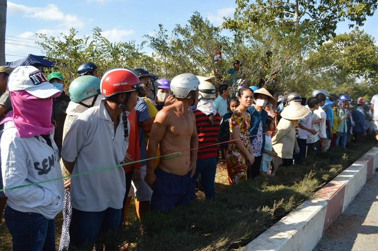 Người dân kéo tới xem công an tiến hành thực nghiệm hiện trường