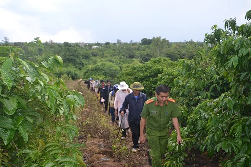 Cơ quan điều tra truy bắt đối tượng Duy lẩn trốn trong rẫy cà phê.