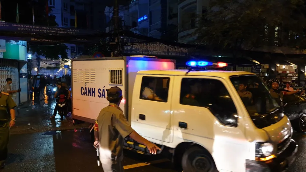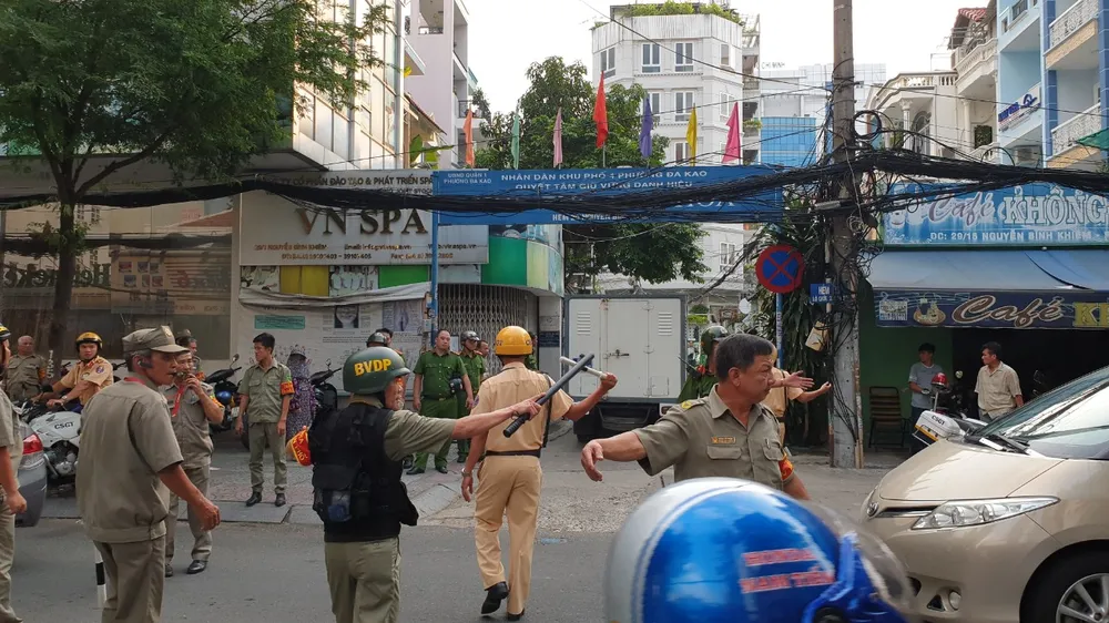 Chiều 4-10, Công an quận 1 phong tỏa hoàn toàn khu vực hẻm 29 để tiến hành thực nghiệm hiện trường vụ xâm phạm chỗ ở xảy ra ở nhà số 29 Nguyễn Bỉnh Khiêm, phường Đa Kao, quận 1.