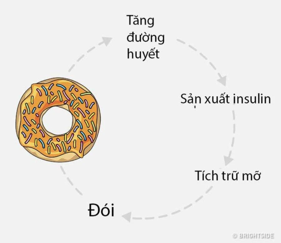 Mức đường cao kích thích cơ thể lưu trữ chất béo và gây đói. Ảnh: Brightside