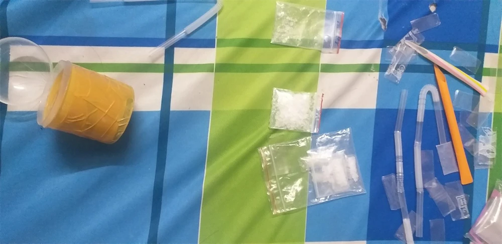 Trong đó, D. bị phát hiện trữ hai gói nylon tinh thể trên người, gói còn lại giấu trên giường. Thanh niên này khai mang số ma tuý trên bán cho T. với giá 100.000 đồng/gói.
