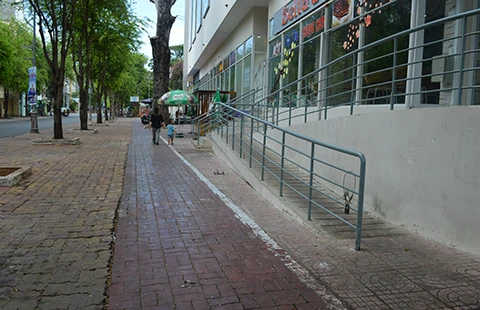 Phần đất trước đây được chủ đầu tư Lam Sơn Square cho thuê, nay chính quyền đã kẻ vạch phân định vỉa hè. Ảnh: T.KHÁNH