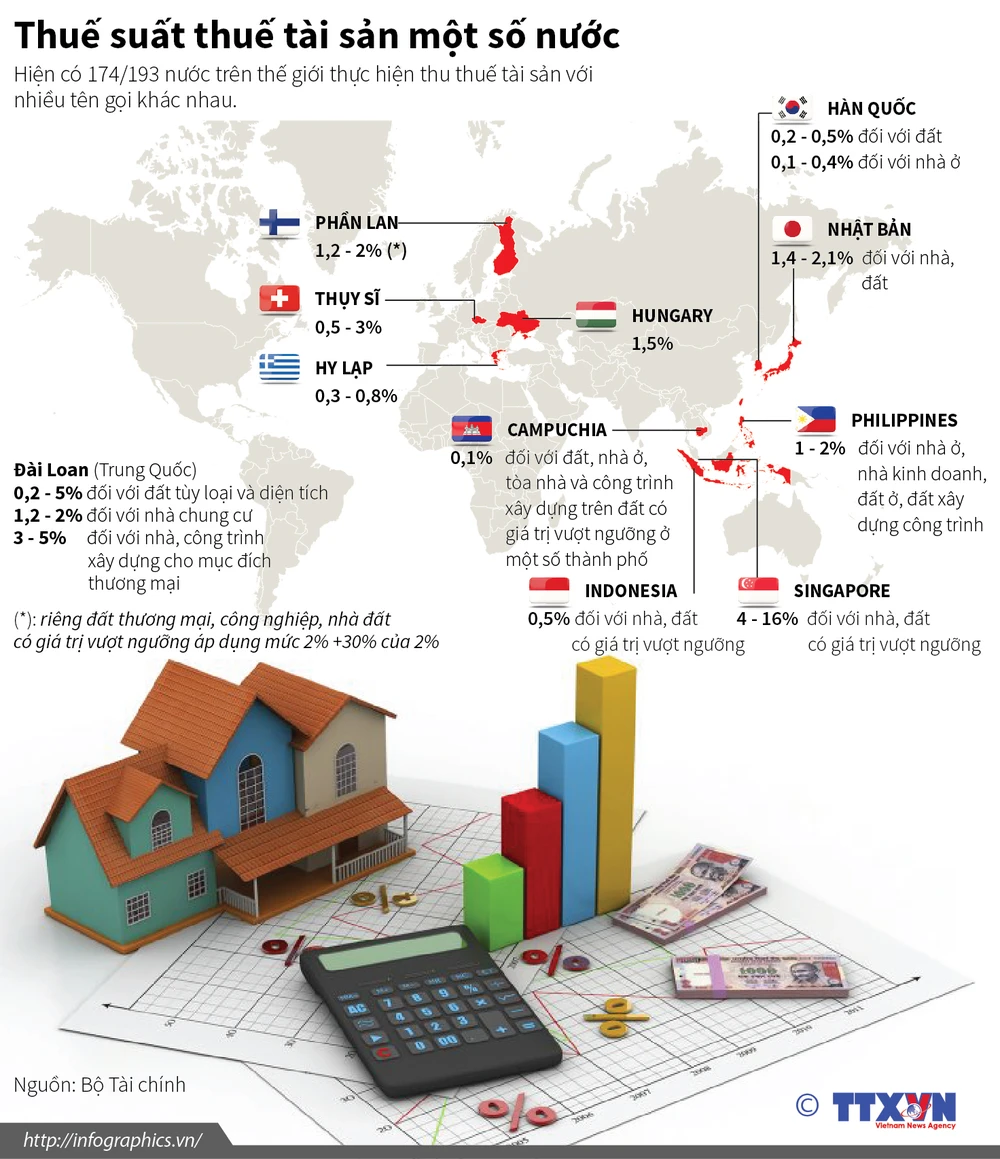 Hiện có 174/193 nước trên thế giới thực hiện thu thuế tài sản với nhiều tên gọi khác nhau.