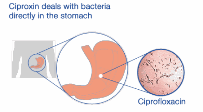 Ciprofloxacin ức chế enzym gryrase gây cản trở thông tin nhiễm sắc thể (một vật liệu di truyền cần thiết cho chuyển hóa) làm cho vi khuẩn giảm sinh sản một cách nhanh chóng. Trong khi đó, các nhóm kháng sinh khác (như betalactam, aminozid), không ức chế enzym gryrase rất dễ bị vi khuẩn kháng. Vì thế, ciprofloxacin (và các fluoroquinolon khác) được xem là “vũ khí chiến lược” dành cho các trường hợp vi khuẩn không đáp ứng với các kháng sinh khác.
