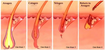 Các giai đoạn của bệnh viêm chân tóc. Hình minh họa.