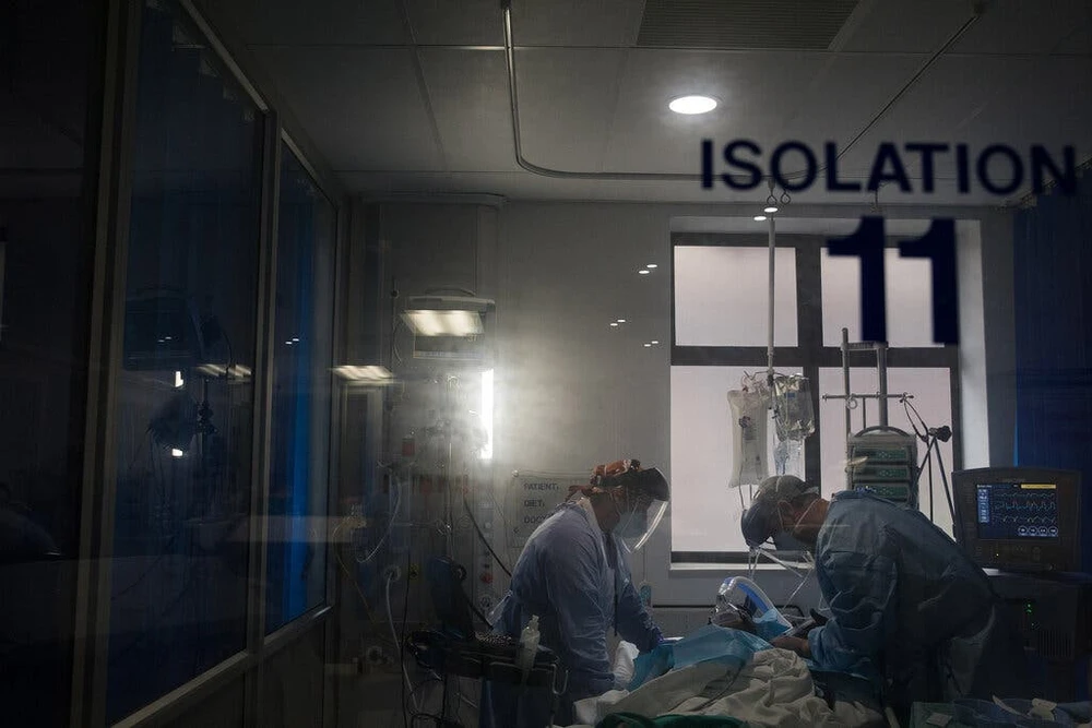 Các nhân viên y tế đang chăm sóc một bệnh nhân nhiễm COVID-19 tại Bệnh viện Greenacres ở Port Elizabeth, Nam Phi. Ảnh: THE NEW YORK TIMES