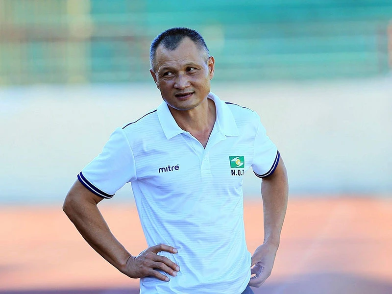 HLV Ngô Quang Trường của SL Nghệ An không ngờ đội bóng của mình trước lượt cuối lại có quyền sinh, quyền sát lớn đến thế. Ảnh: NGỌC DUNG