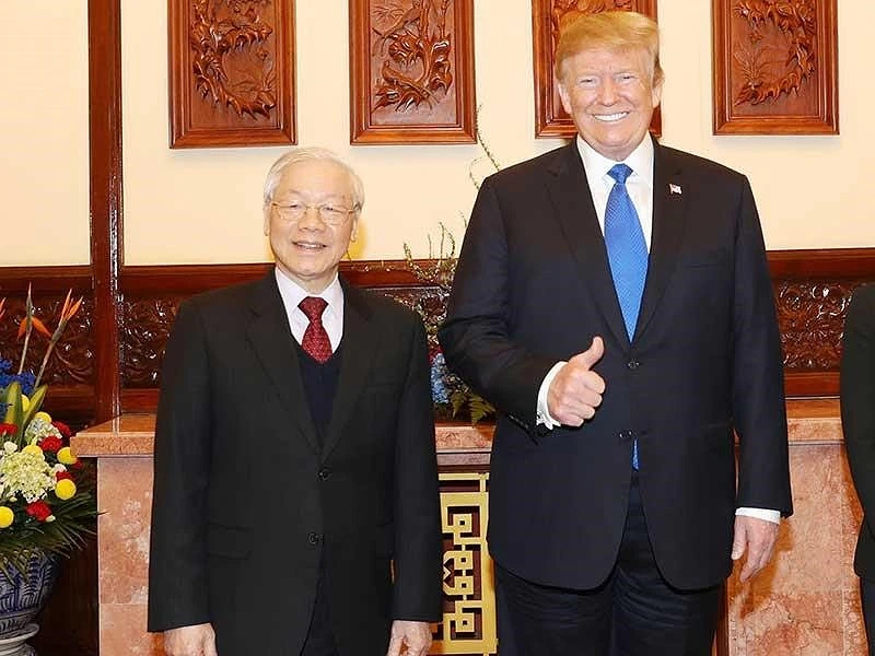 Chào mừng Tổng thống Donald Trump và đoàn cấp cao Mỹ trở lại Việt Nam (lần trước trong dịp APEC 2017), Tổng Bí thư, Chủ tịch nước Nguyễn Phú Trọng hoan nghênh Mỹ, Triều Tiên đã chọn Việt Nam làm nơi tổ chức thượng đỉnh lần thứ hai. Ông tiếp tục khẳng định đường lối đối ngoại của Việt Nam độc lập, tự chủ, đa phương hóa, đa dạng hóa quan hệ đối ngoại; chủ động, tích cực hội nhập quốc tế trên nguyên tắc tôn trọng độc lập, chủ quyền, toàn vẹn lãnh thổ, thể chế chính trị của nhau. Trong đường lối lớn này, Việt Nam nhất quán và coi trọng phát triển quan hệ đối tác toàn diện với Mỹ.