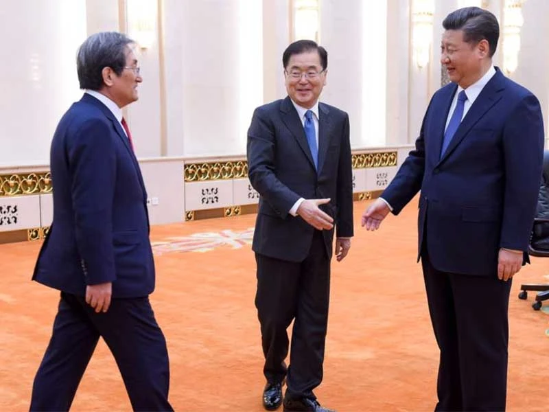 Ngày 12-3, Chủ tịch Trung Quốc (TQ) Tập Cận Bình đã tiếp đón lãnh đạo Văn phòng an ninh quốc gia Hàn Quốc Chung Eui-yong tại Bắc Kinh. Ông Chung là đặc phái viên được Tổng thống Hàn Quốc Moon Jae-in cử đến TQ để thông báo về kết quả các cuộc đối thoại vừa qua với Triều Tiên.