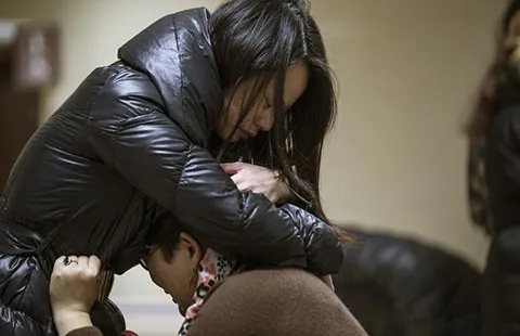 Người thân nạn nhân đang lo lắng và hoảng sợ khi chờ đợi người trong gia đình gặp nạn. Ảnh: REUTERS