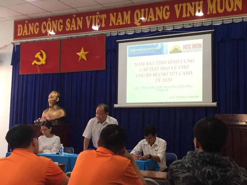 Sở Công Thương TP.HCM vừa có buổi gặp gỡ các thương lái tại chợ đầu mối nông sản thực phẩm Hóc Môn để nắm bắt tình hình cung cấp thịt heo về chợ chuẩn bị cho tết Canh Tý 2020.