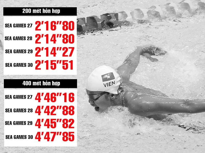 Ánh Viên với những thành tích qua các kỳ SEA Games tại hai cự ly sở trường. Ảnh: NGỌC DUNG
