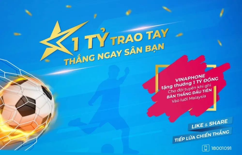 VinaPhone vừa tuyên bố tặng thưởng 1 tỉ đồng cho đội tuyển Việt Nam nếu ghi bàn vào lưới đội tuyển Malaysia trong trận chung kết lượt đi