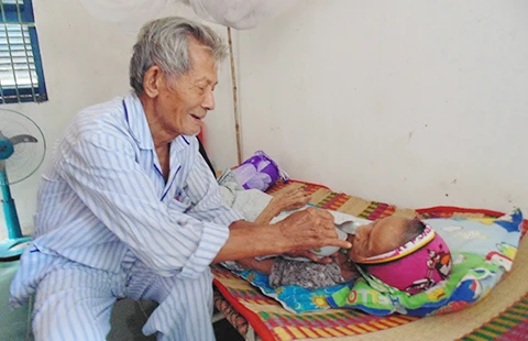 “Bà ơi, cố lên, uống thuốc để còn sống với tôi bà ơi!” - là câu cửa miệng mỗi lúc ông Thọ dỗ vợ uống thuốc. Ảnh: HÀ QUANG