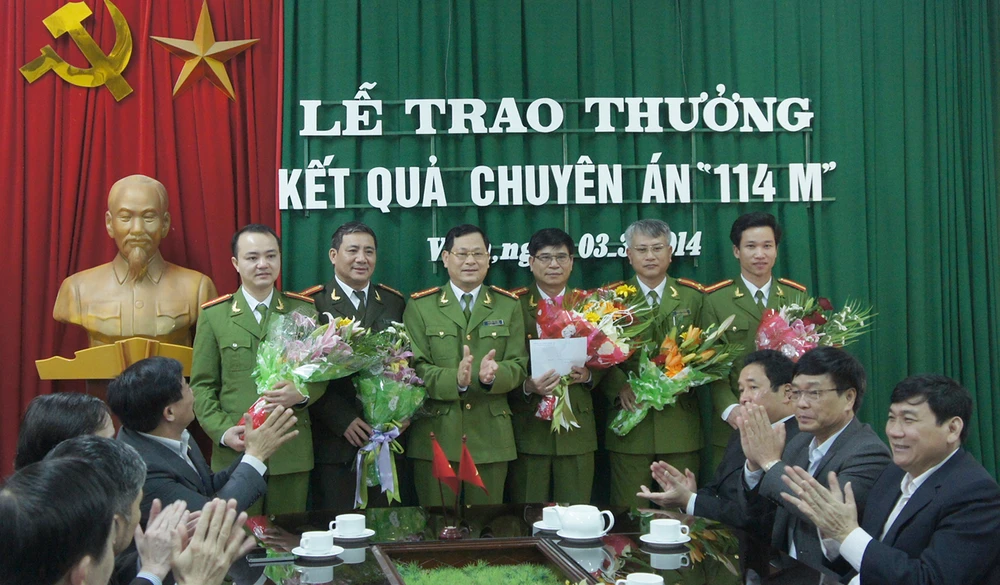 Trong đó, UBND đã thưởng nóng cho Ban chuyên án 114M 20 triệu đồng, UBND TP Vinh thưởng 10 triệu đồng, Ban giám đốc Công an tỉnh Nghệ An thưởng 5 triệu đồng cho Ban chuyên án và 5 triệu đồng cho tổ trực tiếp phá án.