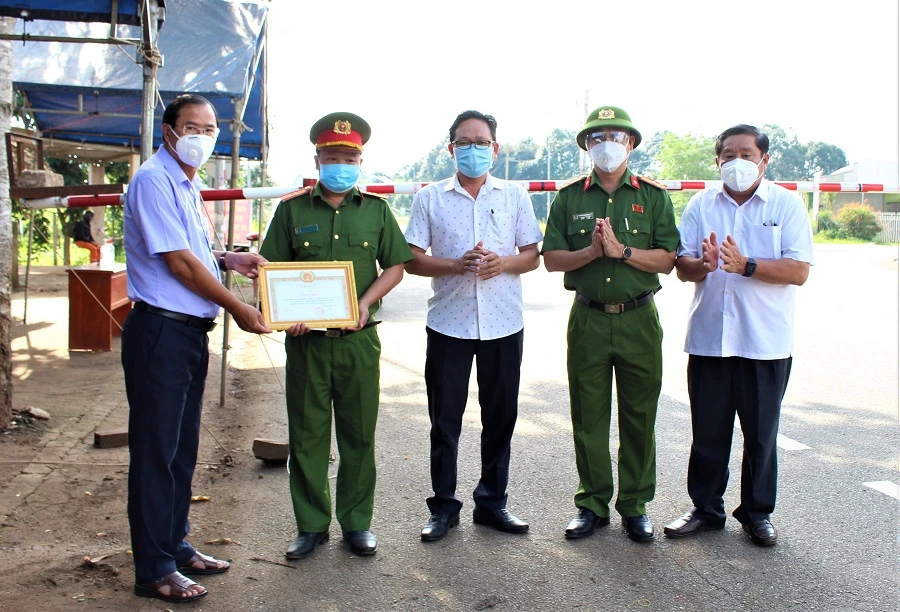 Chiều 27-8, ông Nguyễn Tấn Bản, phó Bí thư thường trực huyện ủy huyện Châu Đức, tỉnh Bà Rịa- Vũng Tàu đã đến chốt kiểm soát dịch bệnh COVID-19 xã Láng Lớn, huyện Châu Đức để trao giấy khen và tiền thưởng cho thiếu tá Trương Huy Dũng, trưởng công an xã Láng Lớn về thành tích kịp thời hỗ trợ đưa một sản phụ đi sinh.