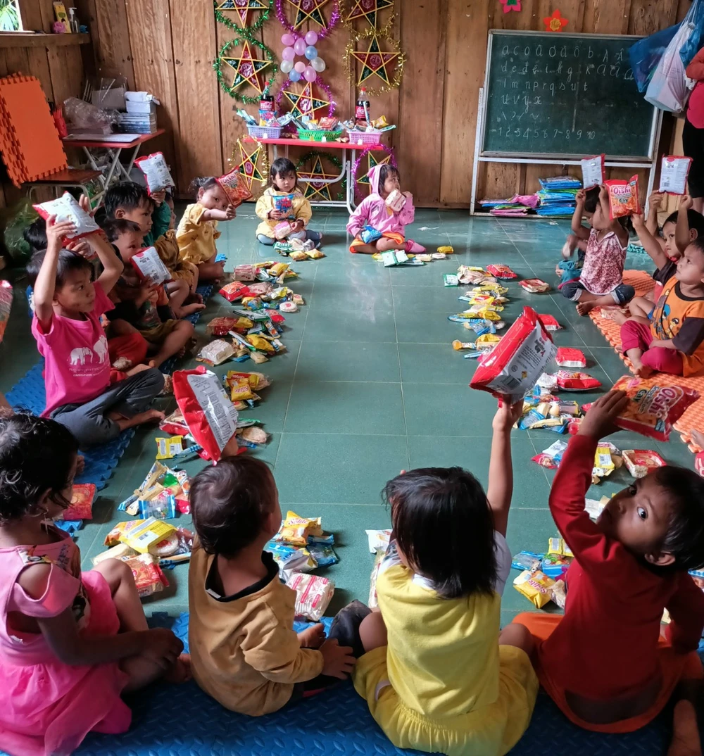 Nhằm động viên tinh thần của các cháu, hôm qua, một mạnh thường quân đã gửi 100 phần quà về đây để các thầy cô tổ chức vui trung thu cho các cháu.
