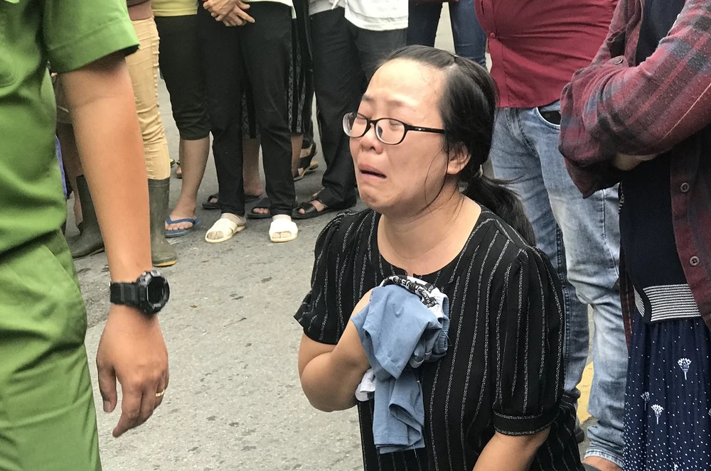 Dì ruột bé trai gào khóc tại hiện trường. Ảnh: Hải Hiếu