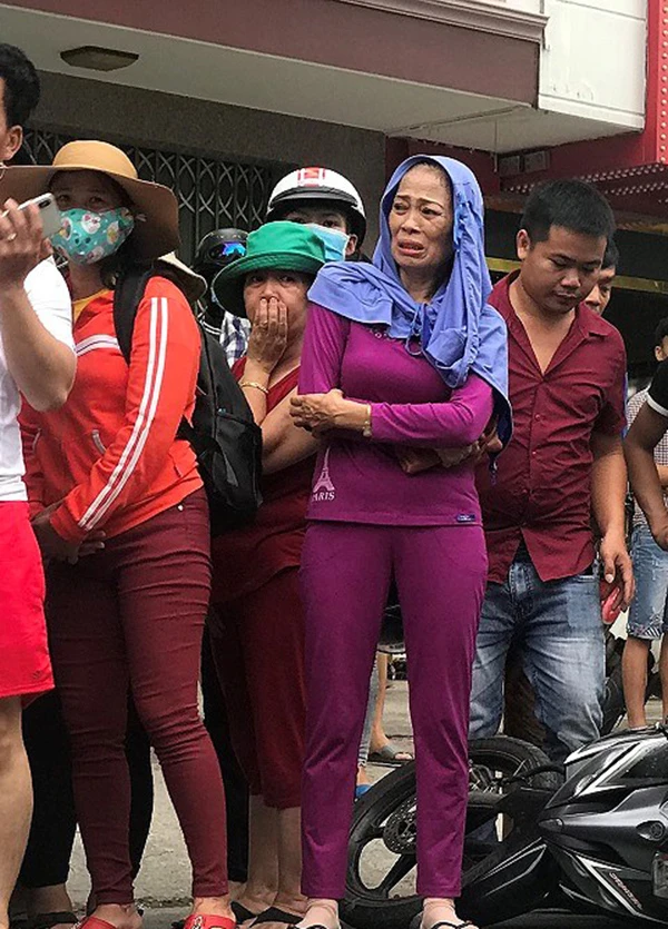 Chứng kiến cảnh cháu bị xe bồn cán qua, người dì ruột liên tục gào khóc tại hiện trường. Những người đi đường cũng không cầm nổi nước mắt.