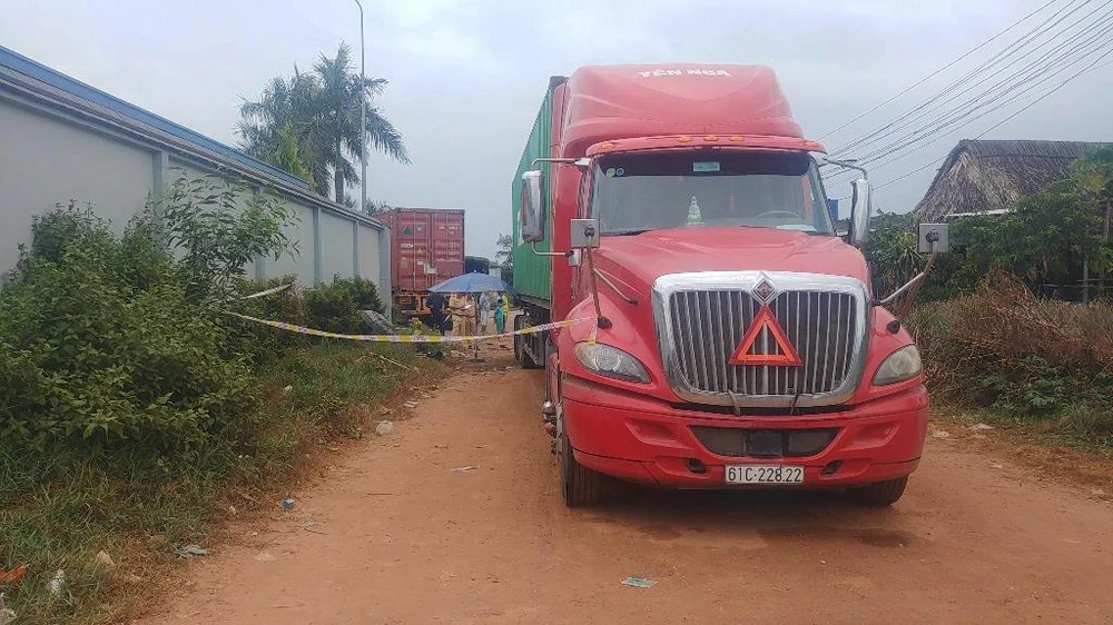 Theo các nhân chứng, sáng 24-11, bé TKT (1 tuổi, ngụ tại phường Tân Hiệp, thị xã Tân Uyên) ra ngoài chơi trước xe đầu kéo đang đậu trong hẻm.