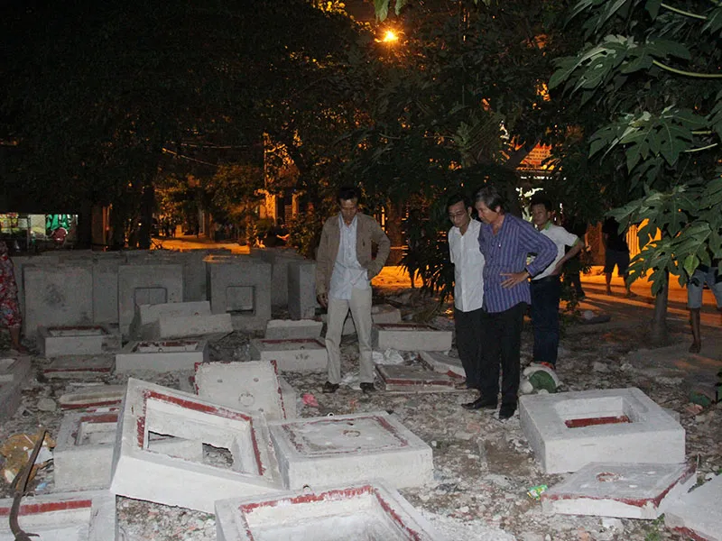 Khu vực để đơn vị thi công đúc cống không có biển cảnh báo, rào chắn. Ảnh H. Tâm.