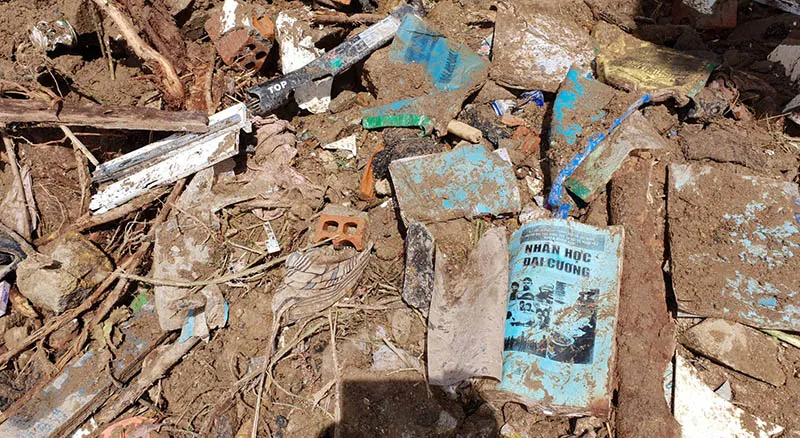 Thi thể hai cháu bé sáu tuổi và 11 tháng tuổi con của vợ chồng thầy Phong bị nước cuốn xa, chôn vùi trong đống đổ nát. Thầy Phong bị đất đá, cây cối lấp sâu, đến cuối ngày 18-11 mới tìm thấy.