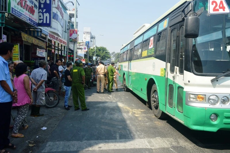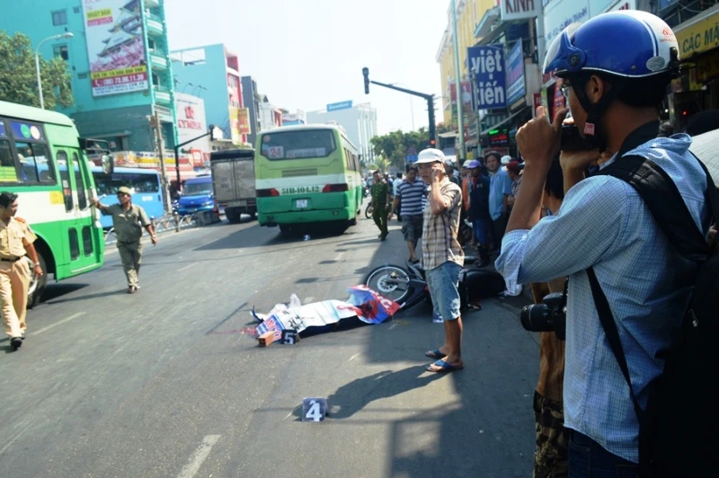 Cú va chạm mạnh đã khiến chị Nh. cùng phương tiện ngã ra đường, chị Nh. bị bánh xe cán phải tử vong tại chỗ; mũ bảo hiểm bị vỡ nát. Tại hiện trường, chiếc xe máy của chị Nh. bị xe buýt kéo lê và quay đầu ngược trở lại bị hư hỏng. Chiếc xe buýt dừng lại cách nạn nhân khoảng 10 m.