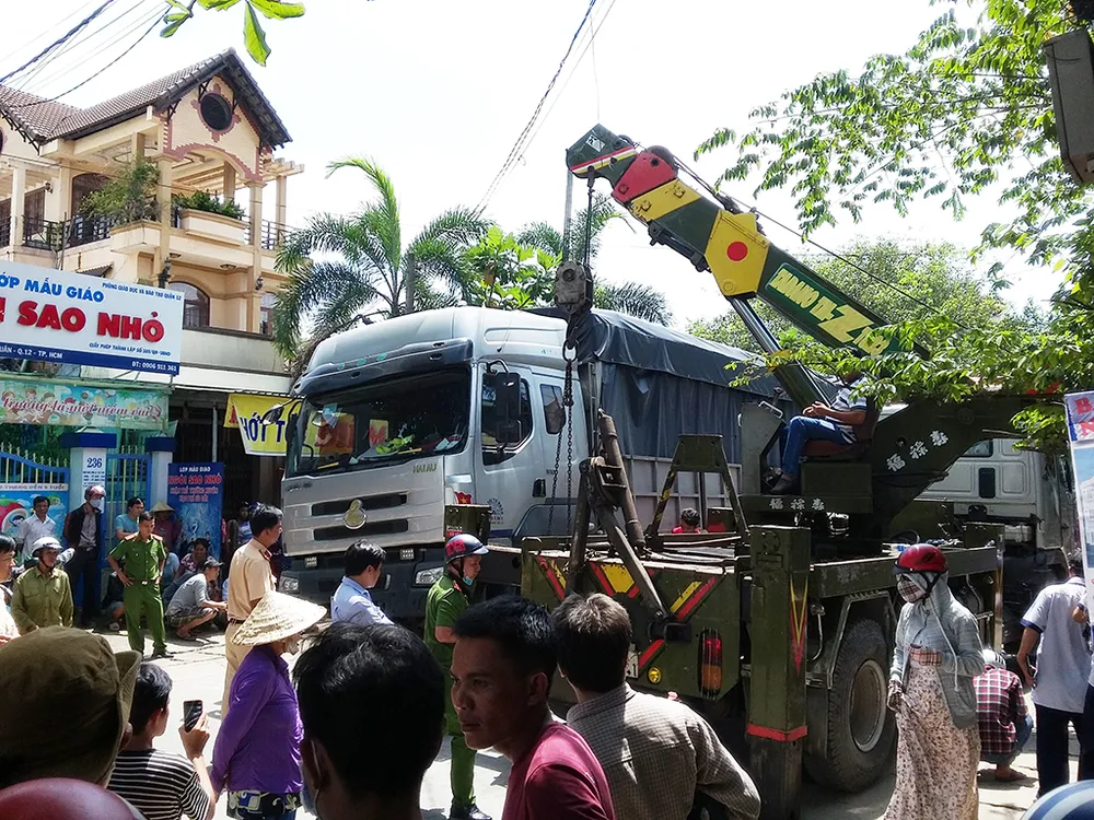 Lực lượng chức năng sở tại sau đó có mặt, phong tỏa hiện trường, phân luồng giao thông và xử lý vụ việc. Do thi thể nạn nhân mắc kẹt dưới bánh xe nên xe cẩu được huy động nâng xe tải nặng lên để đưa thi thể ra ngoài.