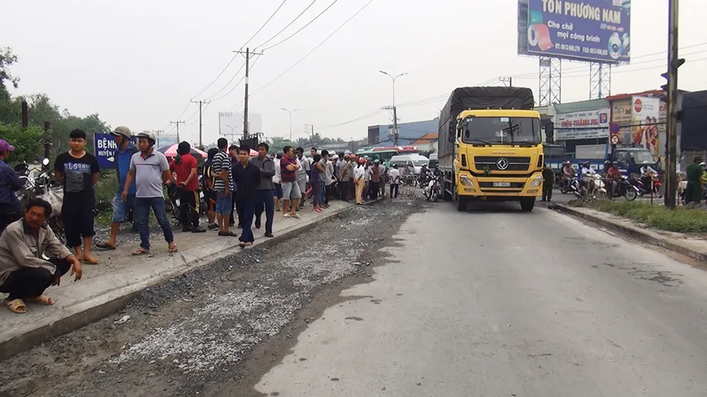 Vụ tai nạn xảy ra trên địa bàn huyện Bình Chánh khiến một cụ bà bị xe tải cán tử vong. Ảnh: H.TÂM