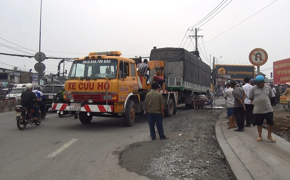 Phương tiện cứu hộ được huy động để di dời phương tiện trong vụ tai nạn. Ảnh: H.TÂM