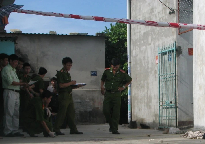 Cơ quan công an tiến hành khám nghiệm hiện trường. Ảnh: LT