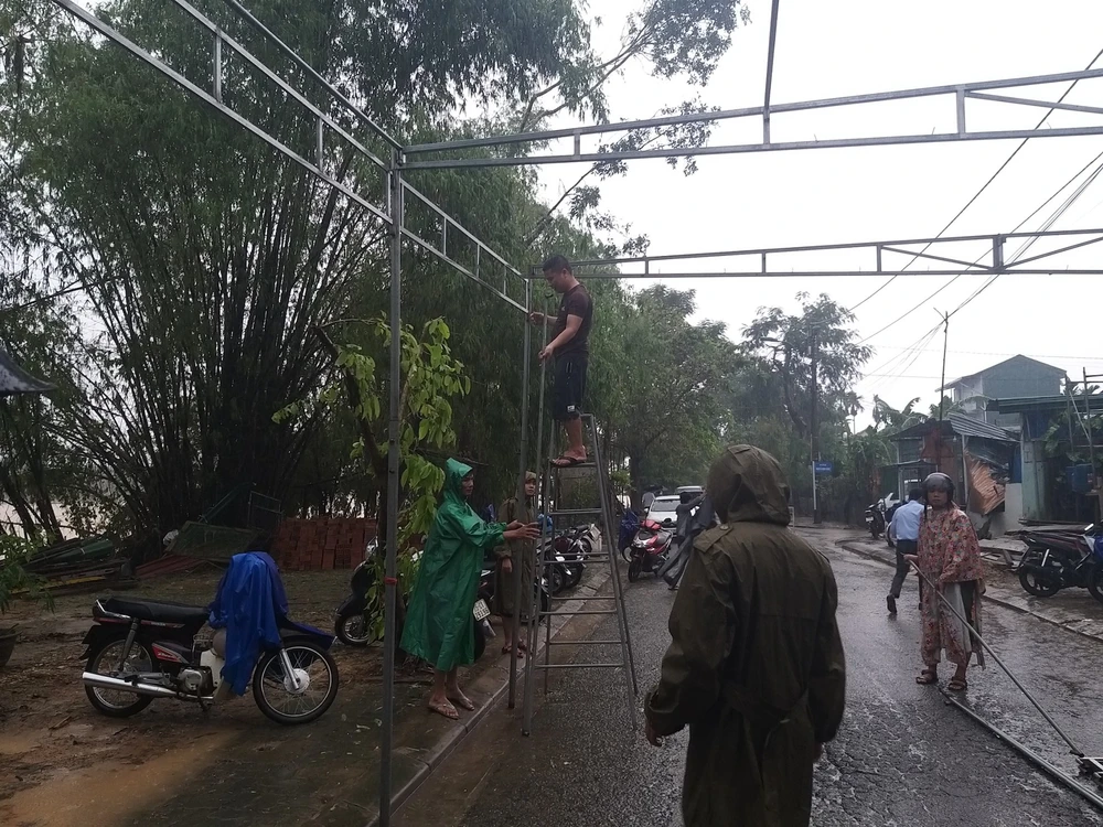 Ngày 16-10, trên con đường nằm dọc sông Bồ, hàng chục chiến sĩ công an, người dân tập trung tại căn nhà cấp 4 để dựng rạp, chuẩn bị tổ chức đám tang cho vị lãnh đạo huyện đã ra đi trong vụ sạt lở tại Tiểu khu 67.