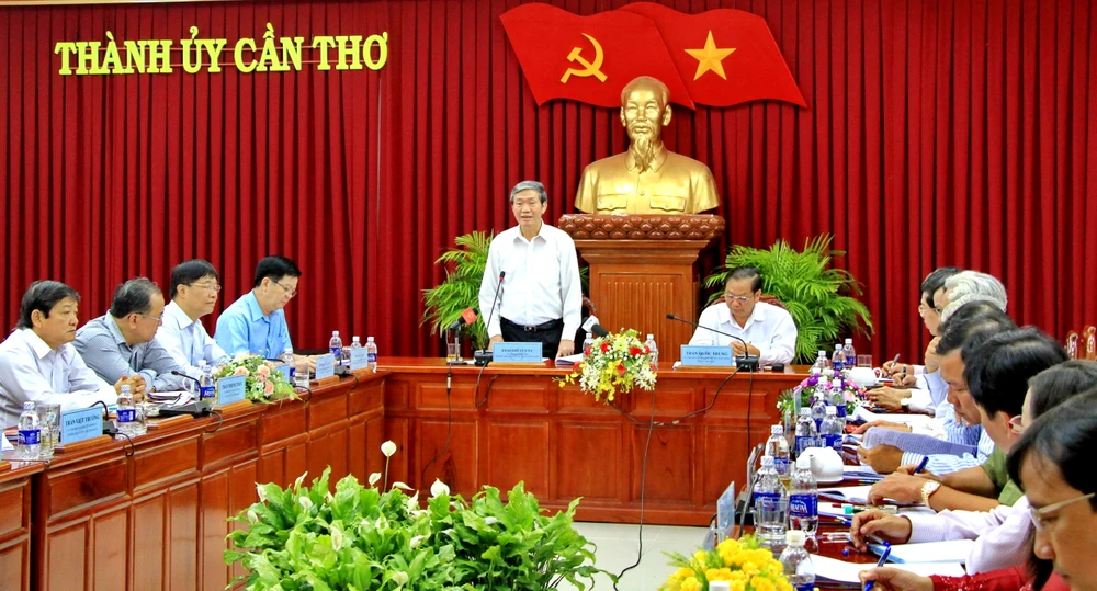 Ông Đinh Thế Huynh phát biểu tại buổi làm việc với Thành ủy Cần Thơ
