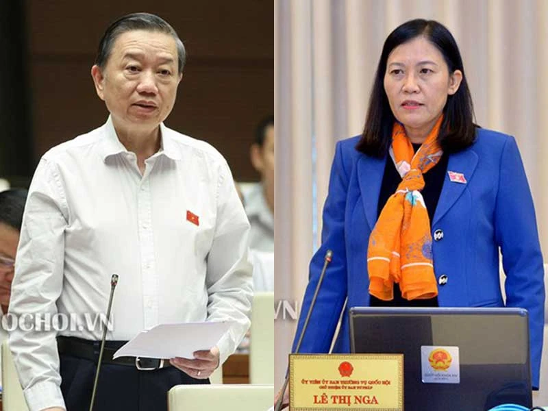 Bộ trưởng Công an Tô Lâm và Chủ nhiệm Ủy ban Tư pháp Lê Thị Nga tại phiên họp Ủy ban Thường vụ Quốc hội. Ảnh: quochoi.vn