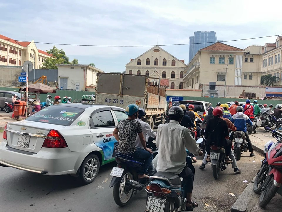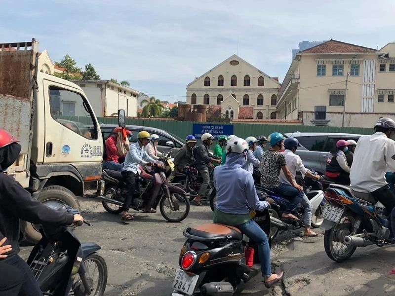 Tại công trường, dự án có lực lượng phân luồng, cảnh sát giao thông hỗ trợ phân luồng. Tuy nhiên, lượng phương tiện tham gia giao thông lớn nên không thể thoát khỏi tình trạng ket xe.