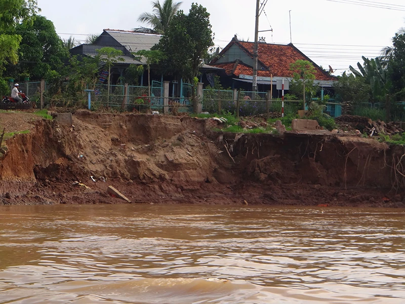 Cần đánh giá tình trạng sạt lở ven bờ sông Tiền gia tăng trong những năm gần đây để có phương án đề phòng. Ảnh: TRUNG THANH