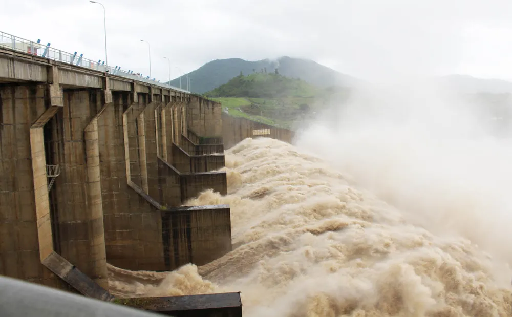 Xả lũ tại Nhà máy Thủy điện Sông Ba Hạ. Ảnh: TẤN LỘC
