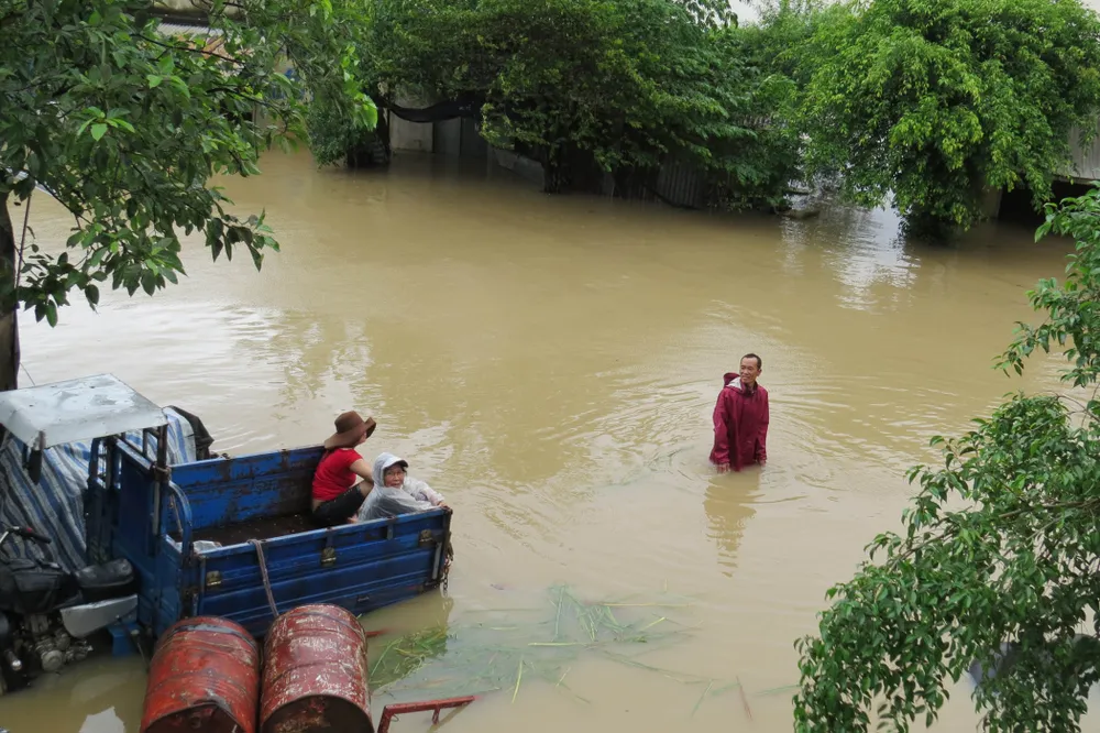 Trong khi người dân chưa kịp ứng phó với lũ từ thượng nguồn đổ xuống thì hồ chứa nước Phú Xuân xả lũ càng gây ngập lụt nặng.