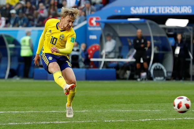 Tuy nhiên, Thụy Điển mới là đội bóng có bàn vươn lên dẫn trước ở phút 66. Xuất phát từ tình huống phát động tấn công bên cánh trái, bóng đến chân Forsberg.