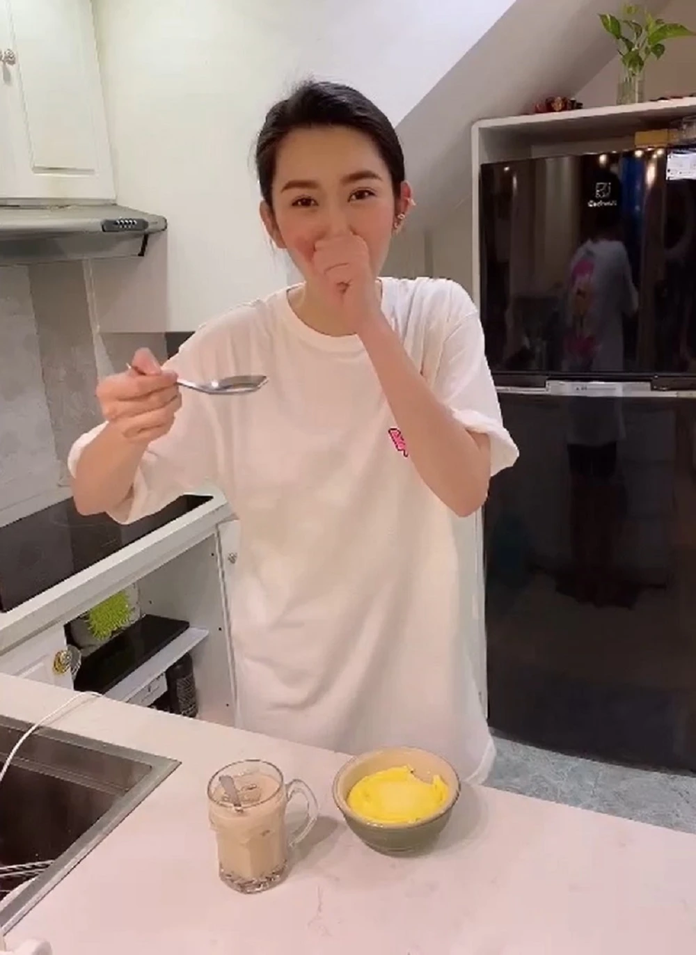 Mạnh mẽ và tự tin nhận lời, Thúy Ngân quyết tâm xắn tay áo vào bếp với món bánh trứng caramel kèm món trà sữa trần châu đường đen.