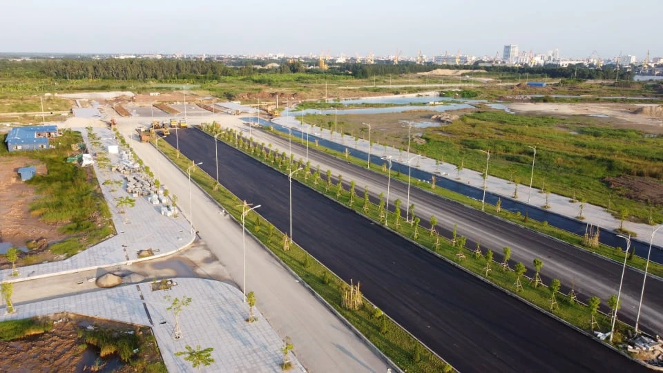 Hạ tầng khu đô thị mới Bắc sông Cấm ở Thủy Nguyên đang được đầu tư xây dựng. Ảnh: Đ.H