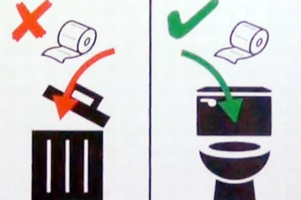 Giấy vệ sinh thuộc về nhà vệ sinh chứ không phải là thùng rác bên cạnh