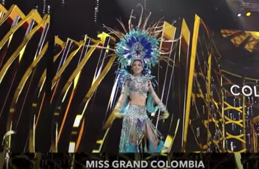 Trang phục dân tộc của Hoa hậu Colombia tại cuộc thi. Ảnh chụp màn hình
