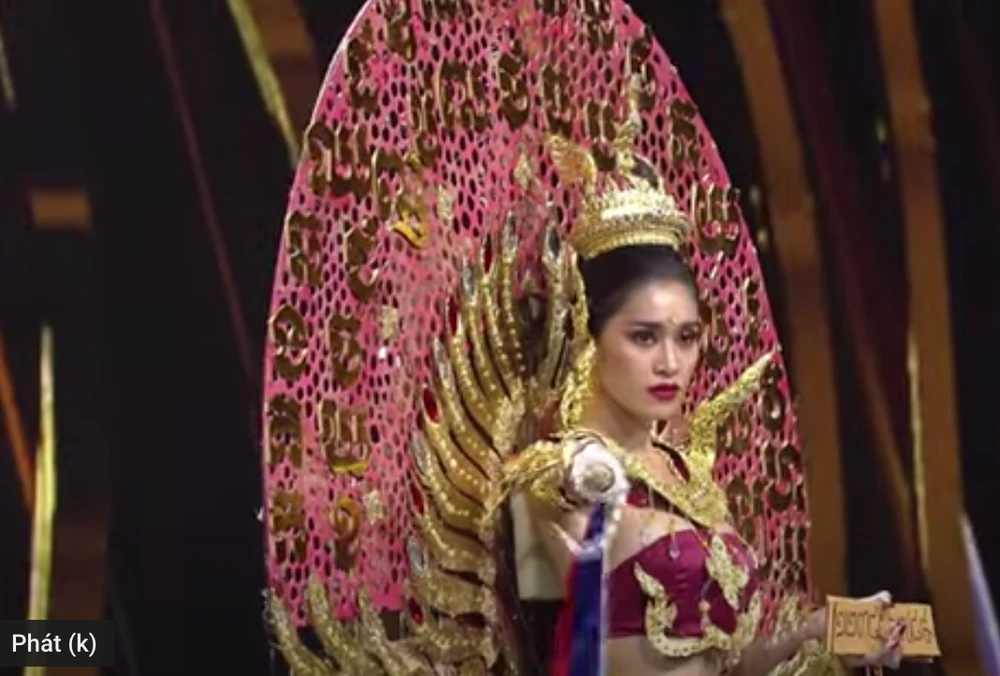Hoa hậu Campuchia mặc đồ lấy cảm hứng từ Angkor Wat. Ảnh chụp màn hình