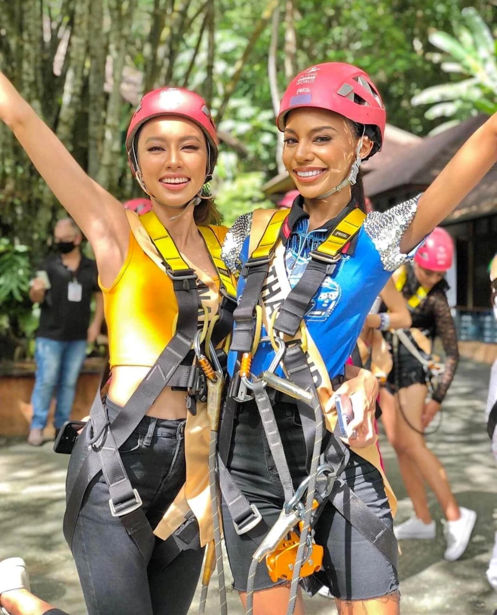 Trước đó, Thùy Tiên cùng các thí sinh là đại diện nhan sắc các nước đã có dịp đến với khu vui chơi trải nghiệm đường zipline thu hút lượng lớn khách du lịch mỗi ngày, đối với những hoạt động đề cao thể lực có lẽ sẽ không làm khó Thùy Tiên bởi thân hình khỏe khoắn có được từ bài tập rèn luyện thể hình.